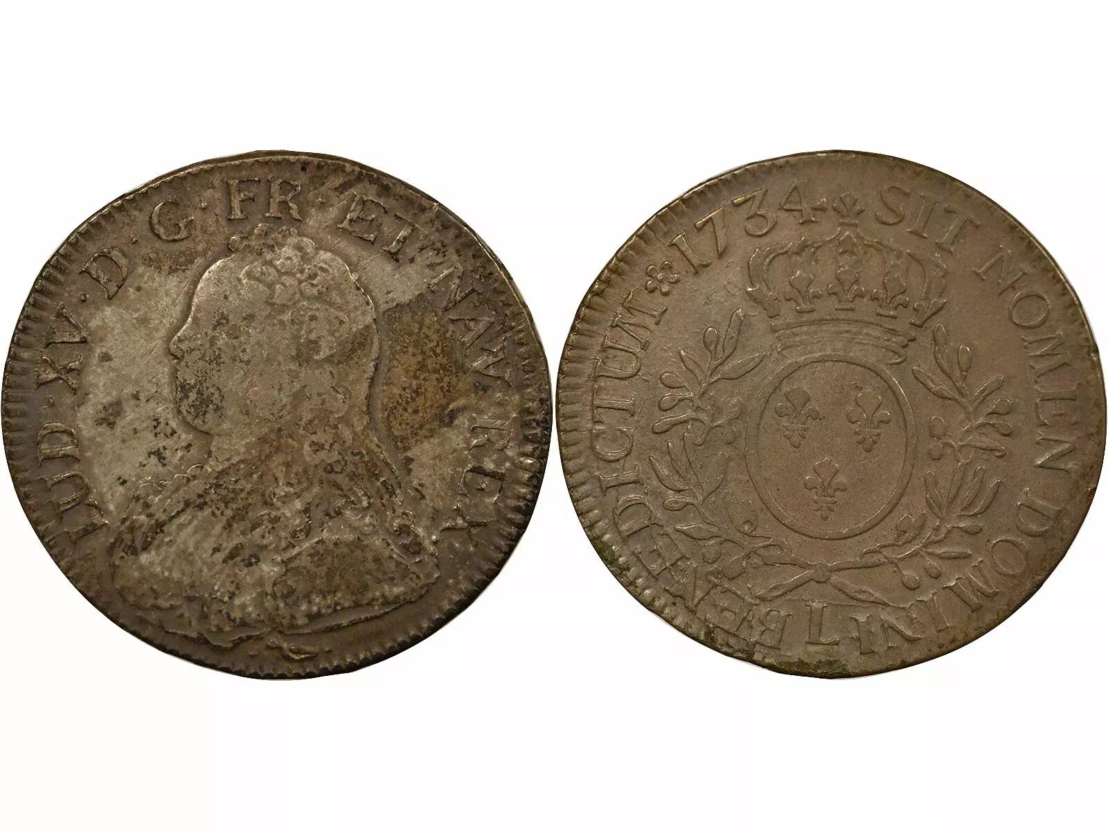 Coin France Louis XV - Silver Ecu, with Dressed up Bust - 1734 L Bayonne