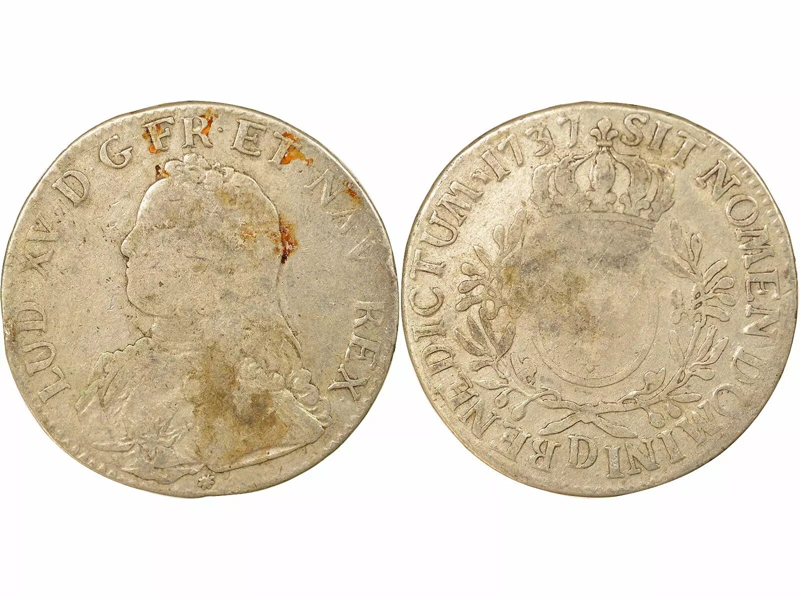 Coin France Louis XV - Silver Ecu with Dressed up Bust - 1737 D Lyon
