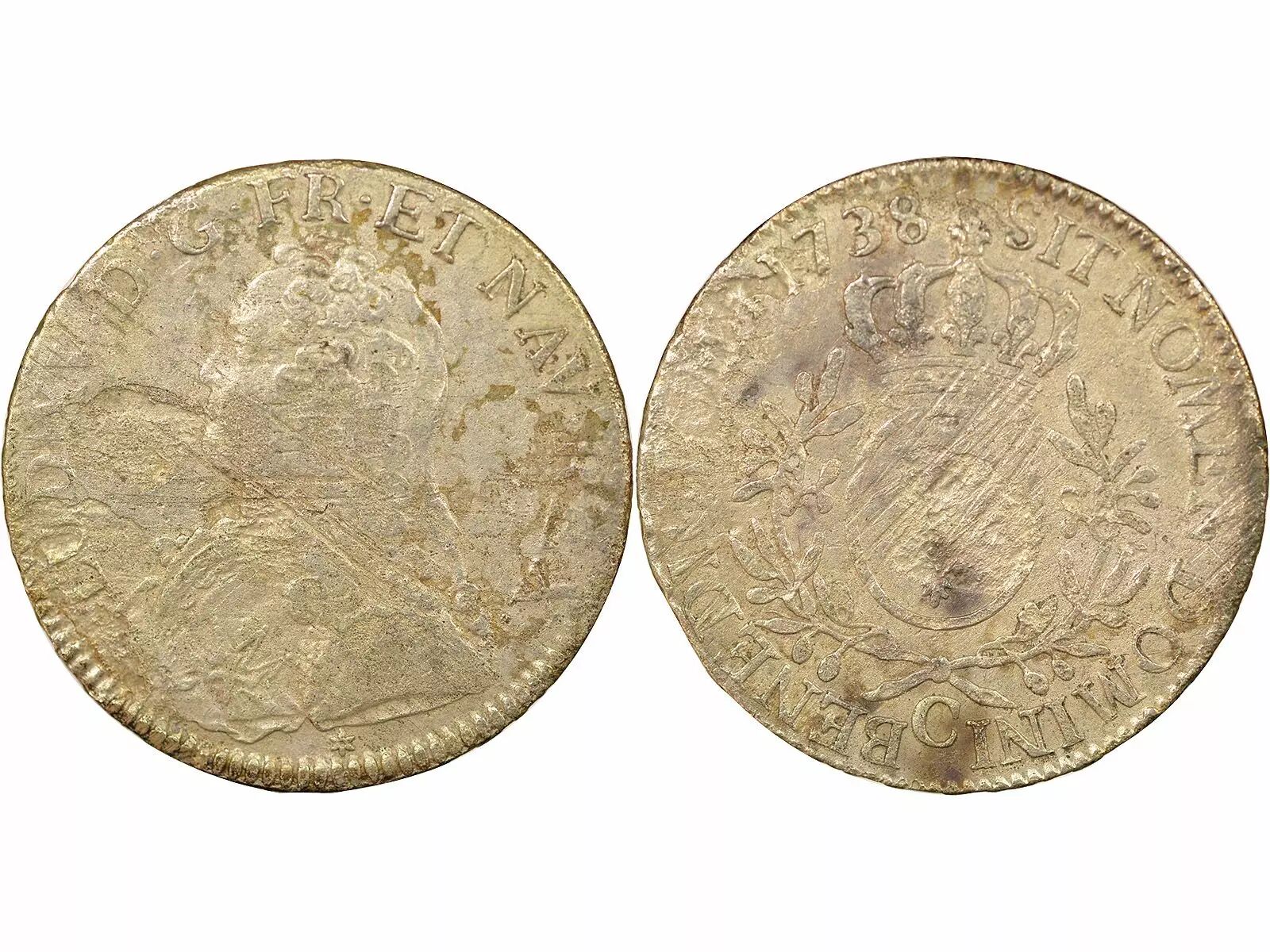 Coin France Louis XV - Silver Ecu with Dressed up Bust - 1738 C Caen