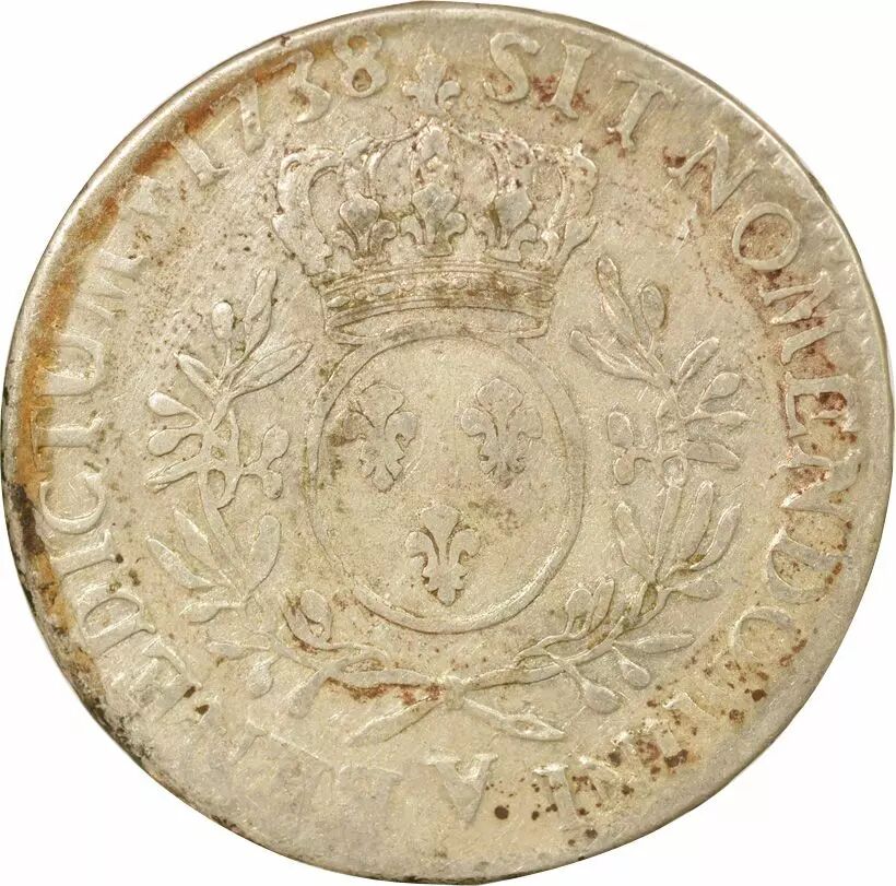 Coin France Louis XV - Silver Ecu with Dressed up Bust - 1738 V Troyes