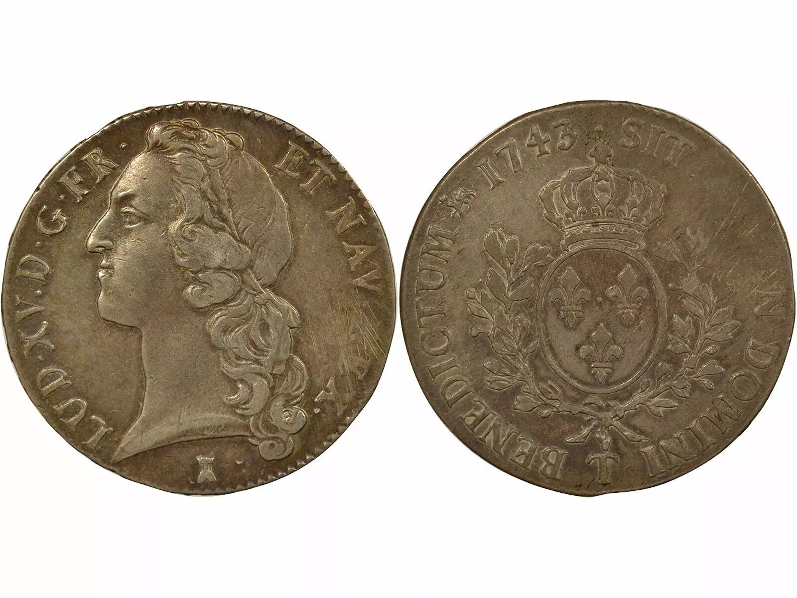 Coin France Louis XV - Silver Ecu, with Headband - 1743 T Nantes