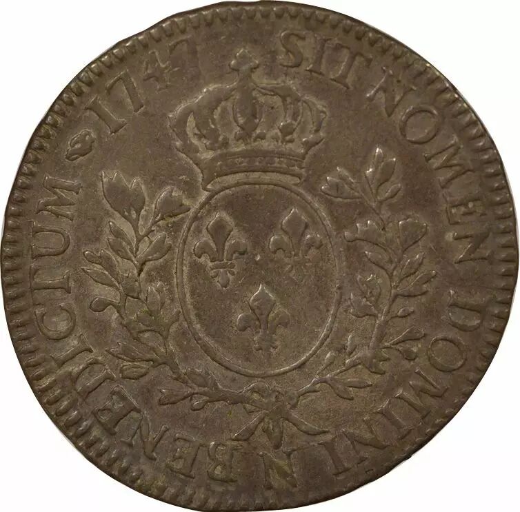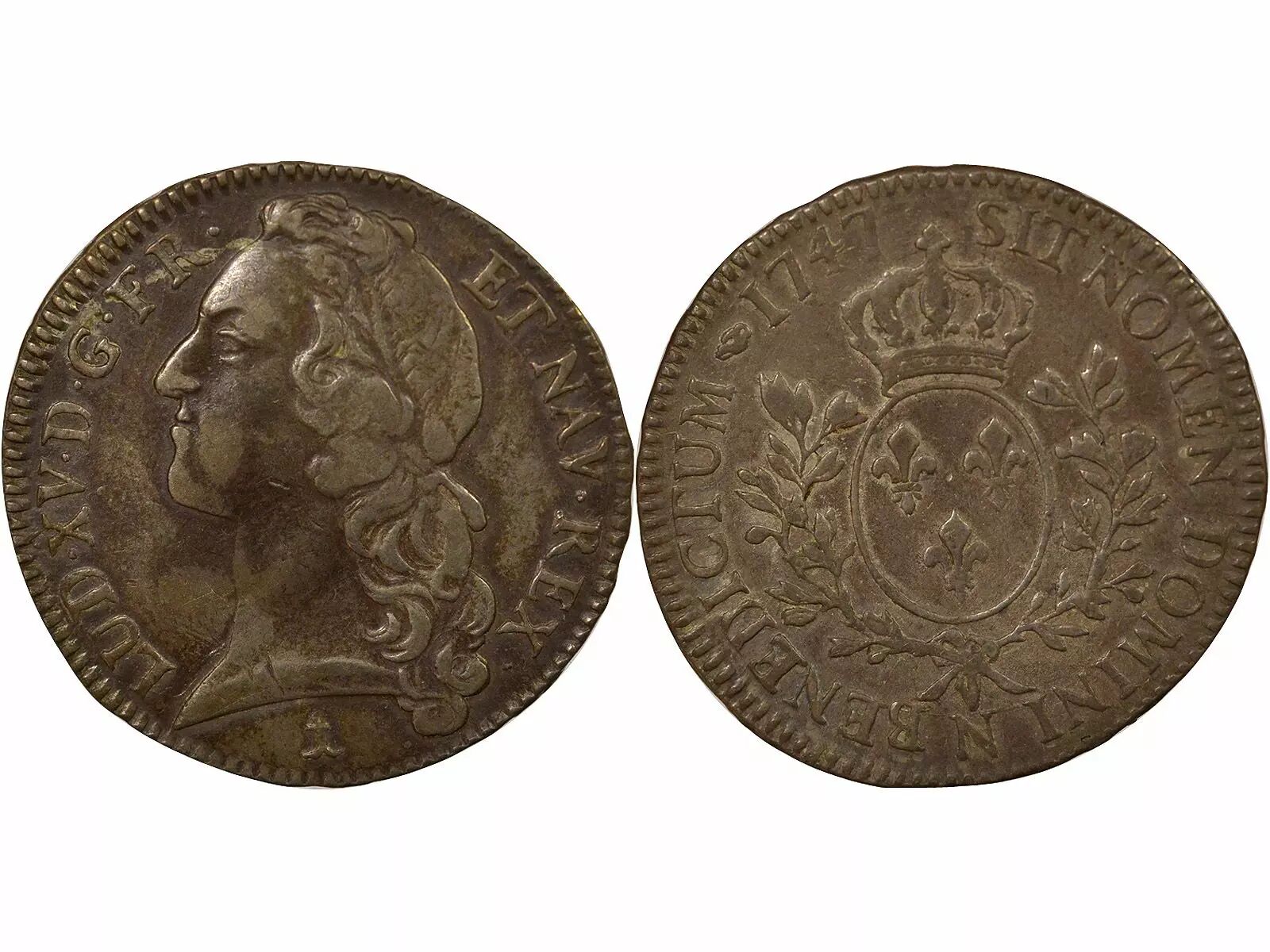 Coin France Louis XV - Silver Ecu, with Headband - 1747 N Montpellier
