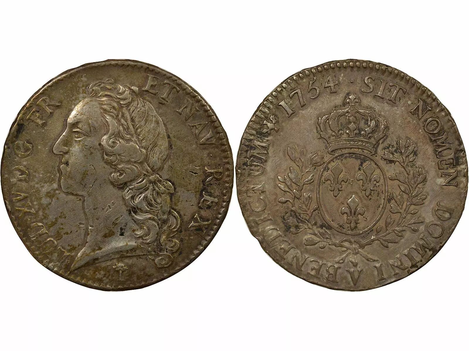 Coin France Louis XV - Silver Ecu, with Headband - 1754 V Troyes