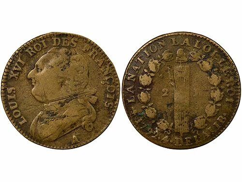Pièce France Louis XVI - 12 Deniers au Faisceau - 1792 A Paris (Louvre)