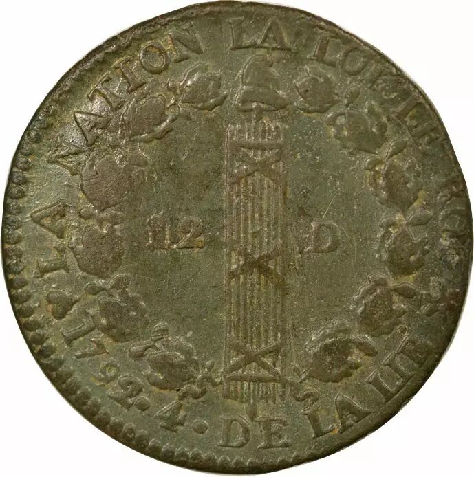 Pièce France Louis XVI - 12 Deniers au Faisceau, type Français - 1792 BB Strasbourg