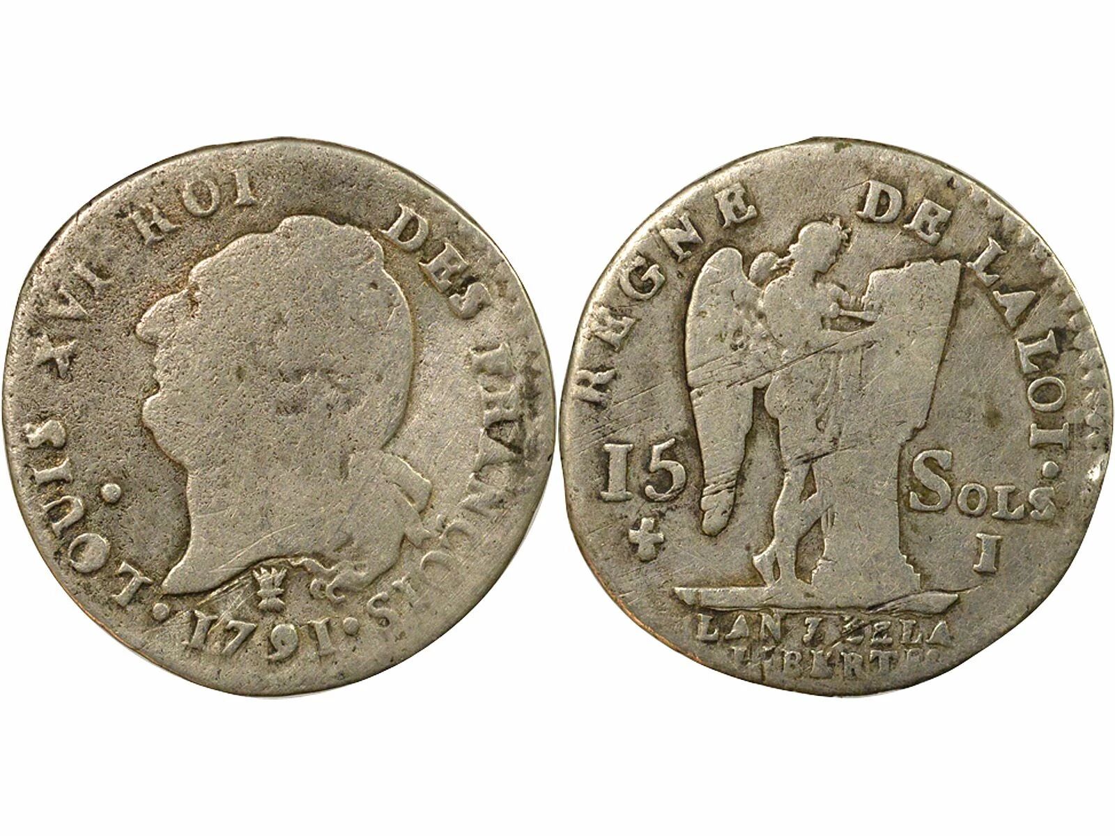 Home > French coins (470 à 2002) > Modern Currencies (1789 to 2002) > Revolutionary Period (1789-1804) > France Louis XVI - 15 Silver Sols, with Genius - 1791 I Limoges