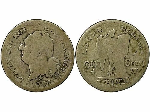 Home > French coins (470 à 2002) > Royal Coinage (987 to 1870) > Louis XVI (1754-1793) > France Louis XVI - 30 Sols Argent, with Genius - 1792 W Lille