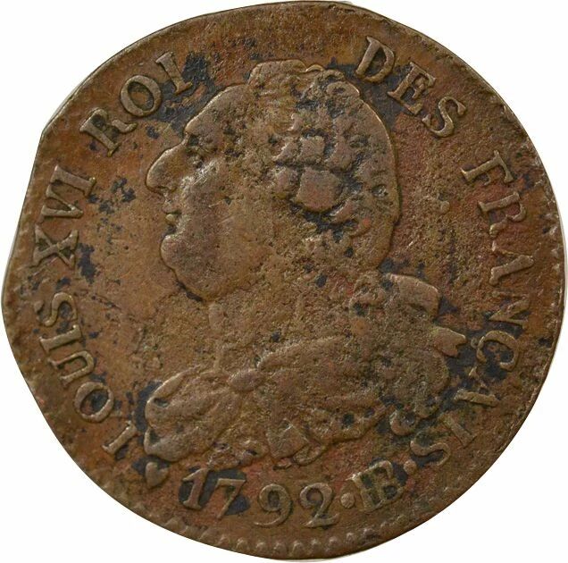 Pièce France Louis XVI - 6 Deniers, au Faisceau - 1792 BB Strasbourg