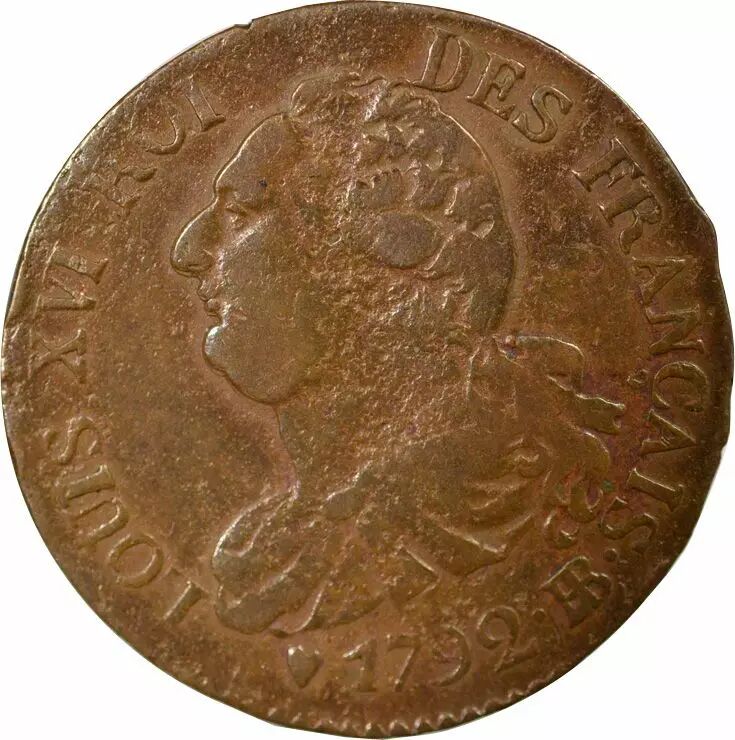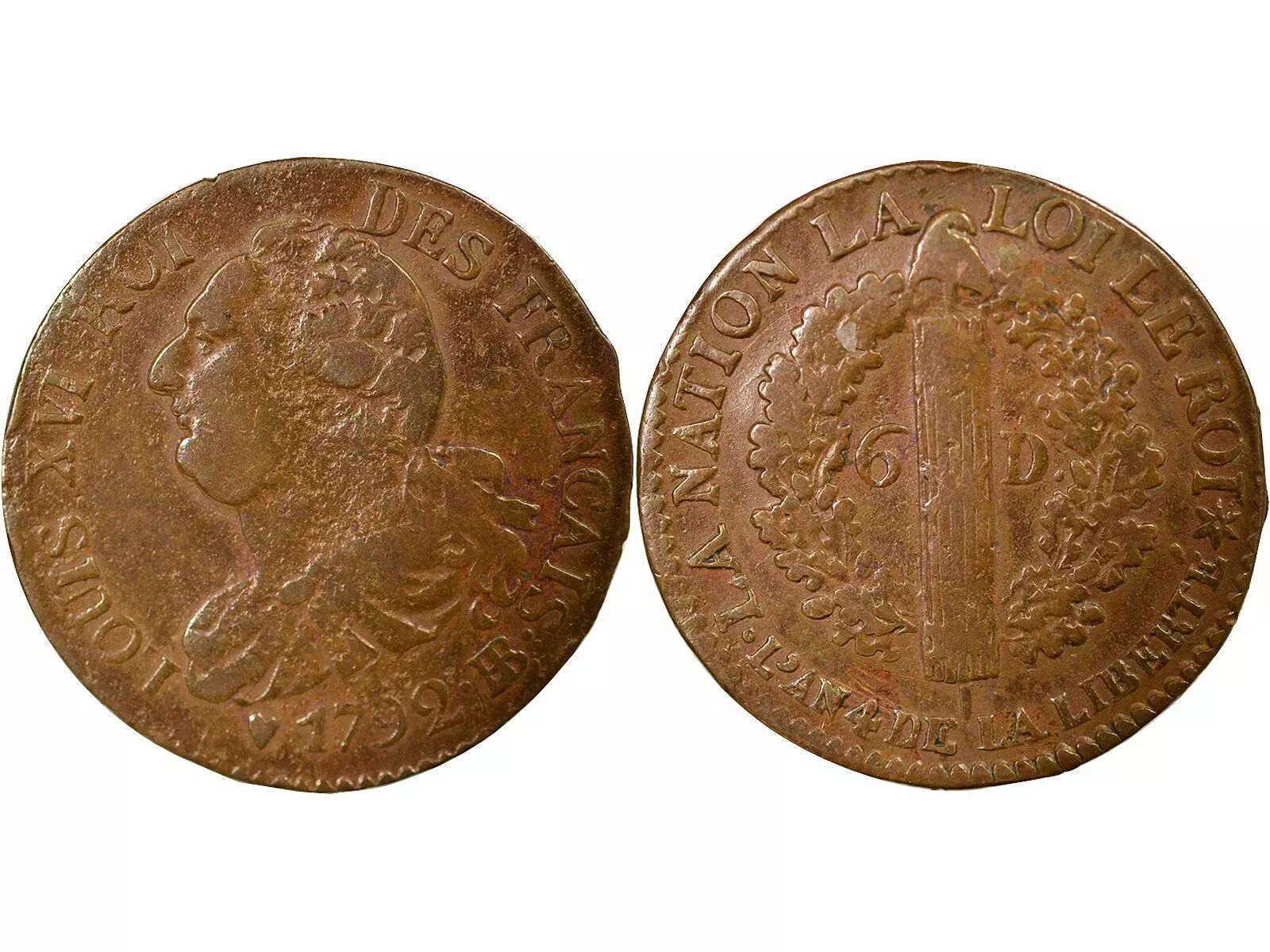 Coin France Louis XVI - 6 Deniers, with Fasces - 1792 BB Strasbourg