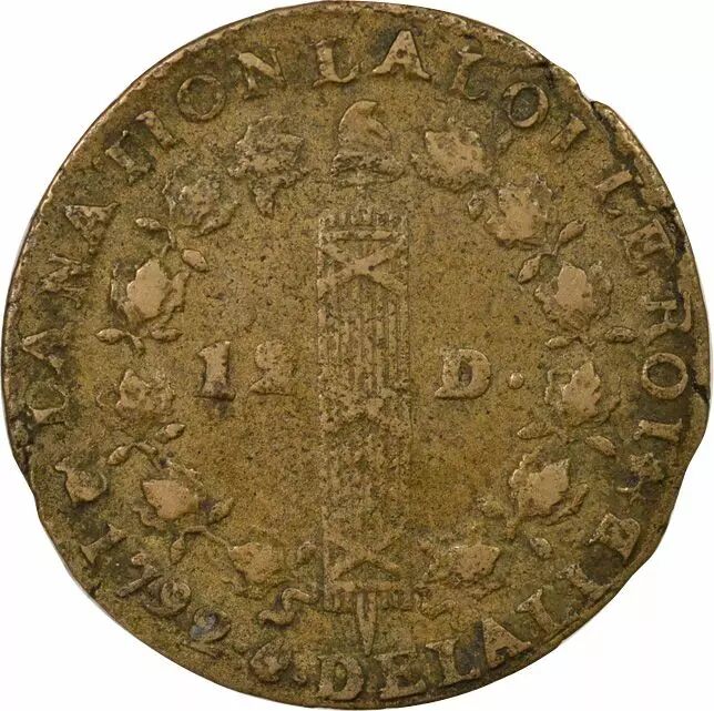 Pièce France Louis XVI, Constitution - 12 Deniers au Faisceau - 1792 T Nantes