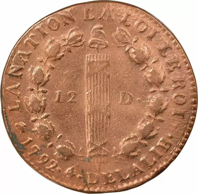 Coin France Louis XVI, Constitution - 12 Deniers with Fasces - 1792 D Lyon