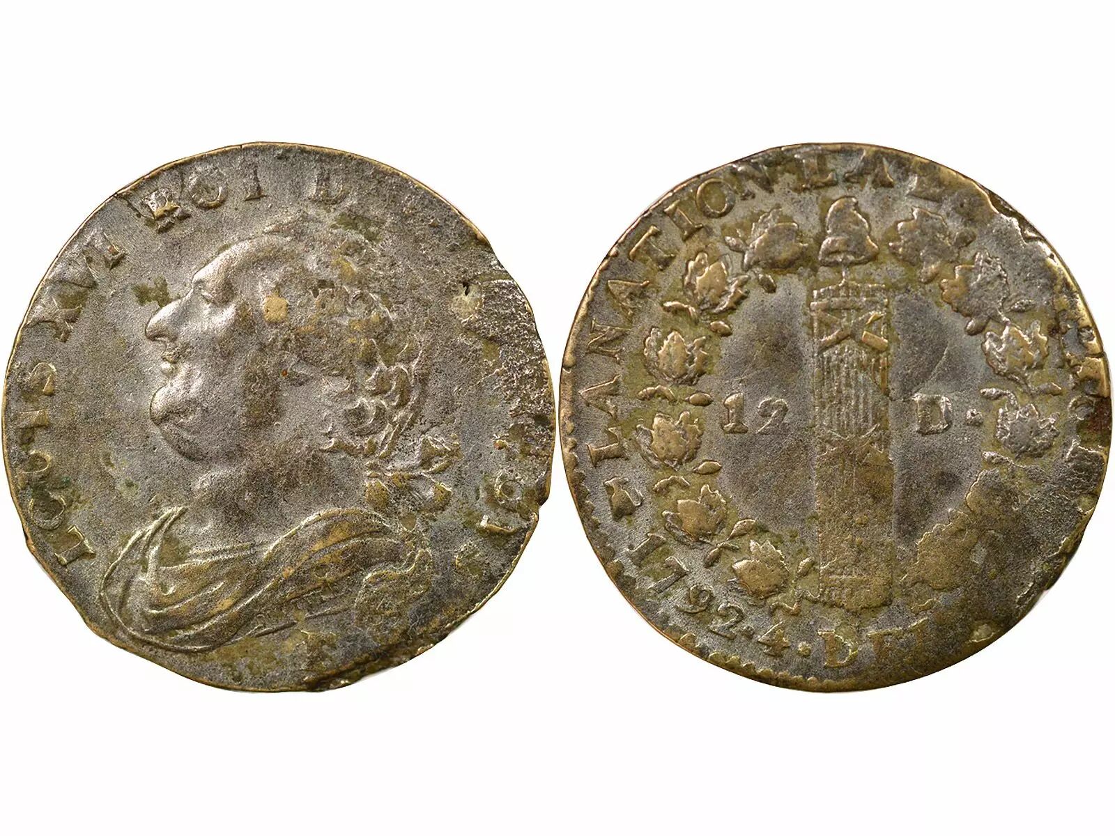 Home > > France Louis XVI, Constitution - 12 Deniers with Fasces - 1792 T. Saumur