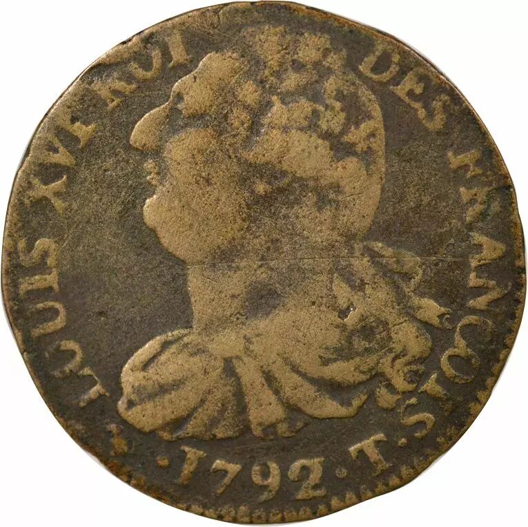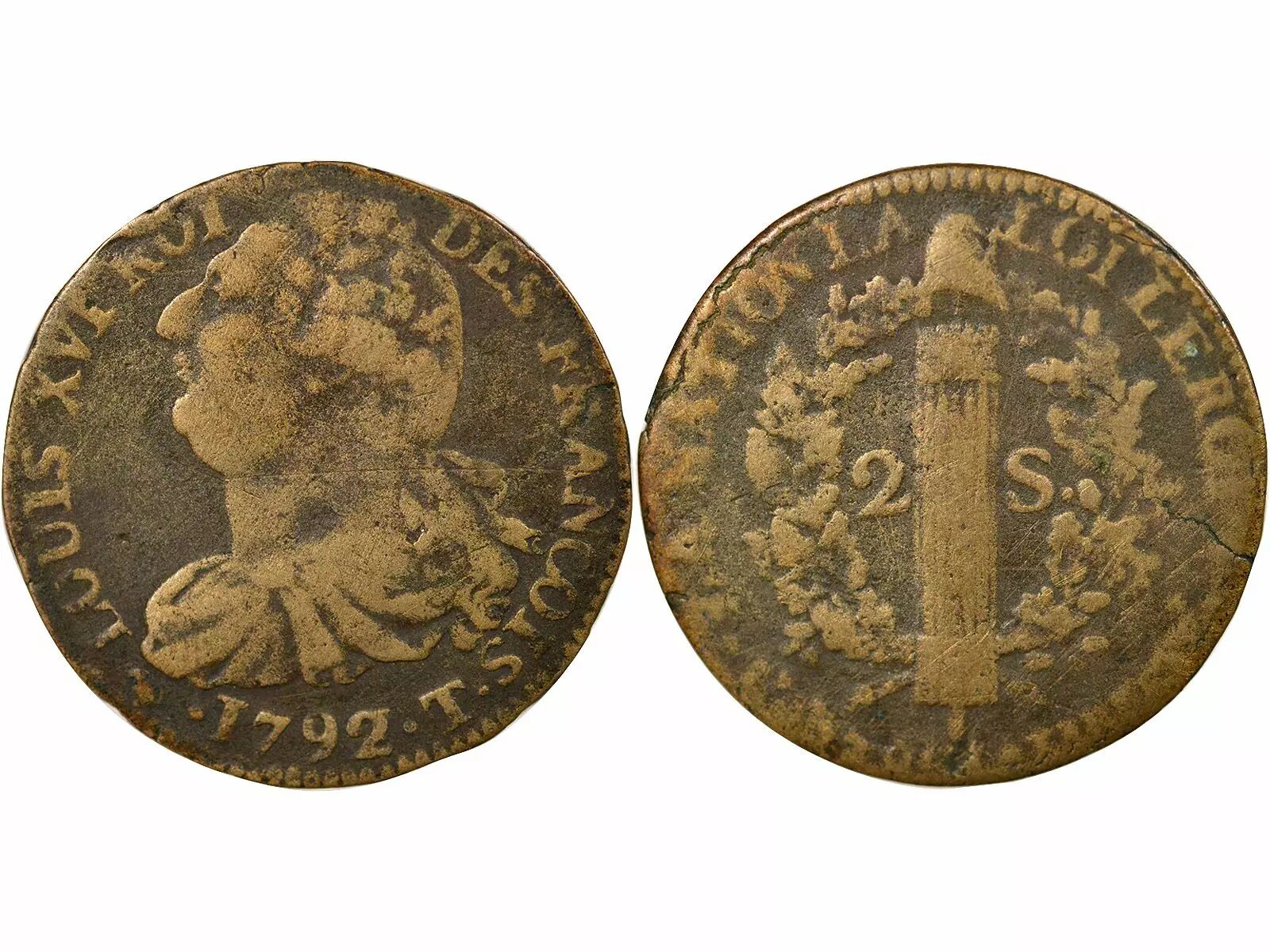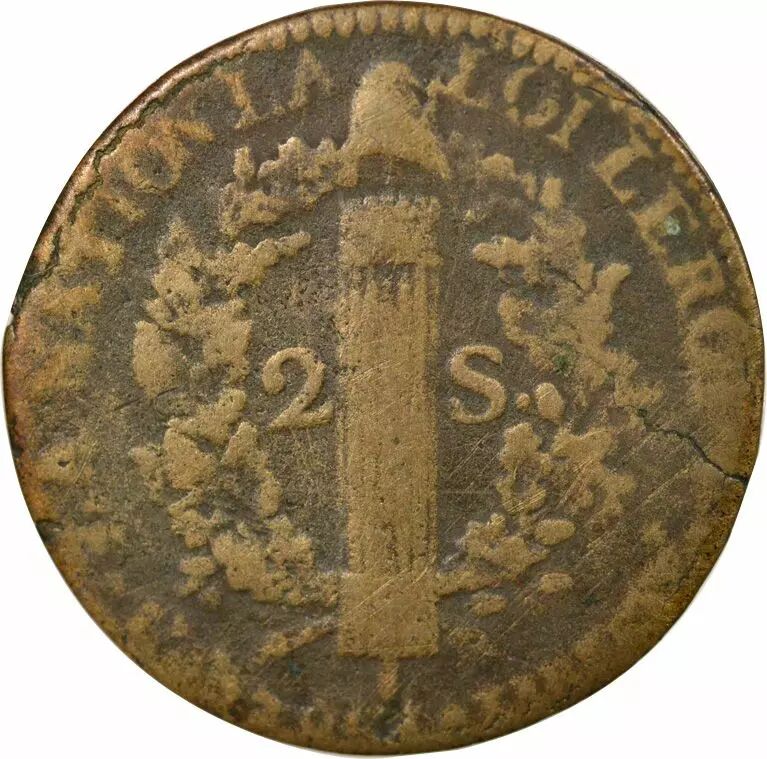 Pièce France Louis XVI, Constitution - 2 Sols au Faisceau - 1792 T Nantes