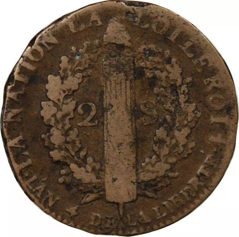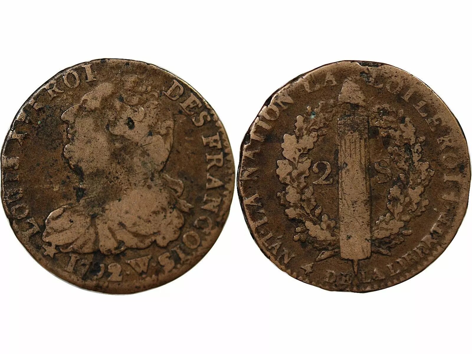 Pièce France Louis XVI, Constitution - 2 Sols Roi Des François 1792 W° Arras