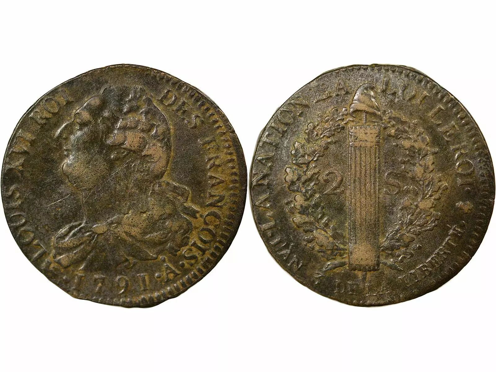 Coin France Louis XVI, Constitution - 2 Sols with Fasces - 1791 Å Paris Barnabites