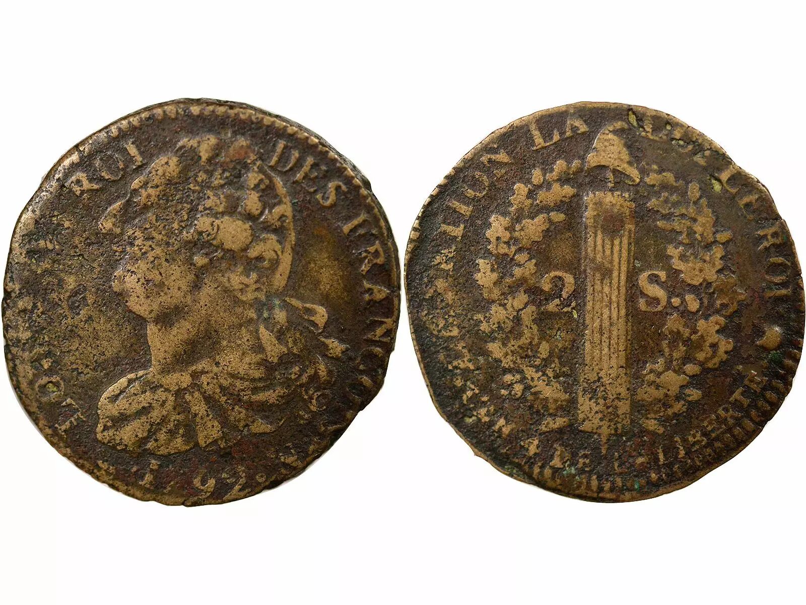 Home > French coins (470 à 2002) > Modern Currencies (1789 to 2002) > Revolutionary Period (1789-1804) > France Louis XVI, Constitution - 2 Sols with Fasces - 1792 N Montpellier