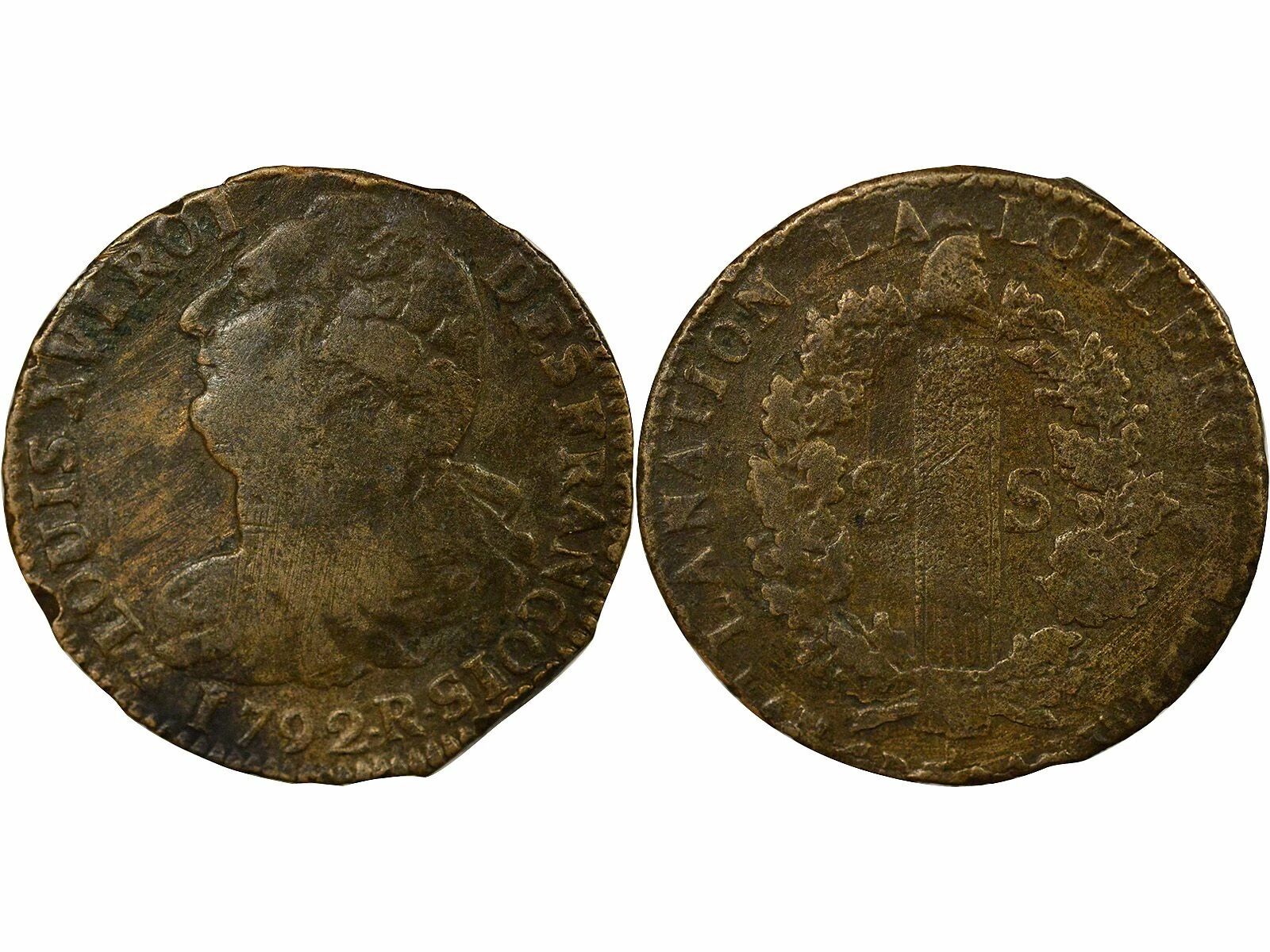 Home > French coins (470 à 2002) > Modern Currencies (1789 to 2002) > Revolutionary Period (1789-1804) > France Louis XVI, Constitution - 2 Sols with Fasces - 1792 R Orléans