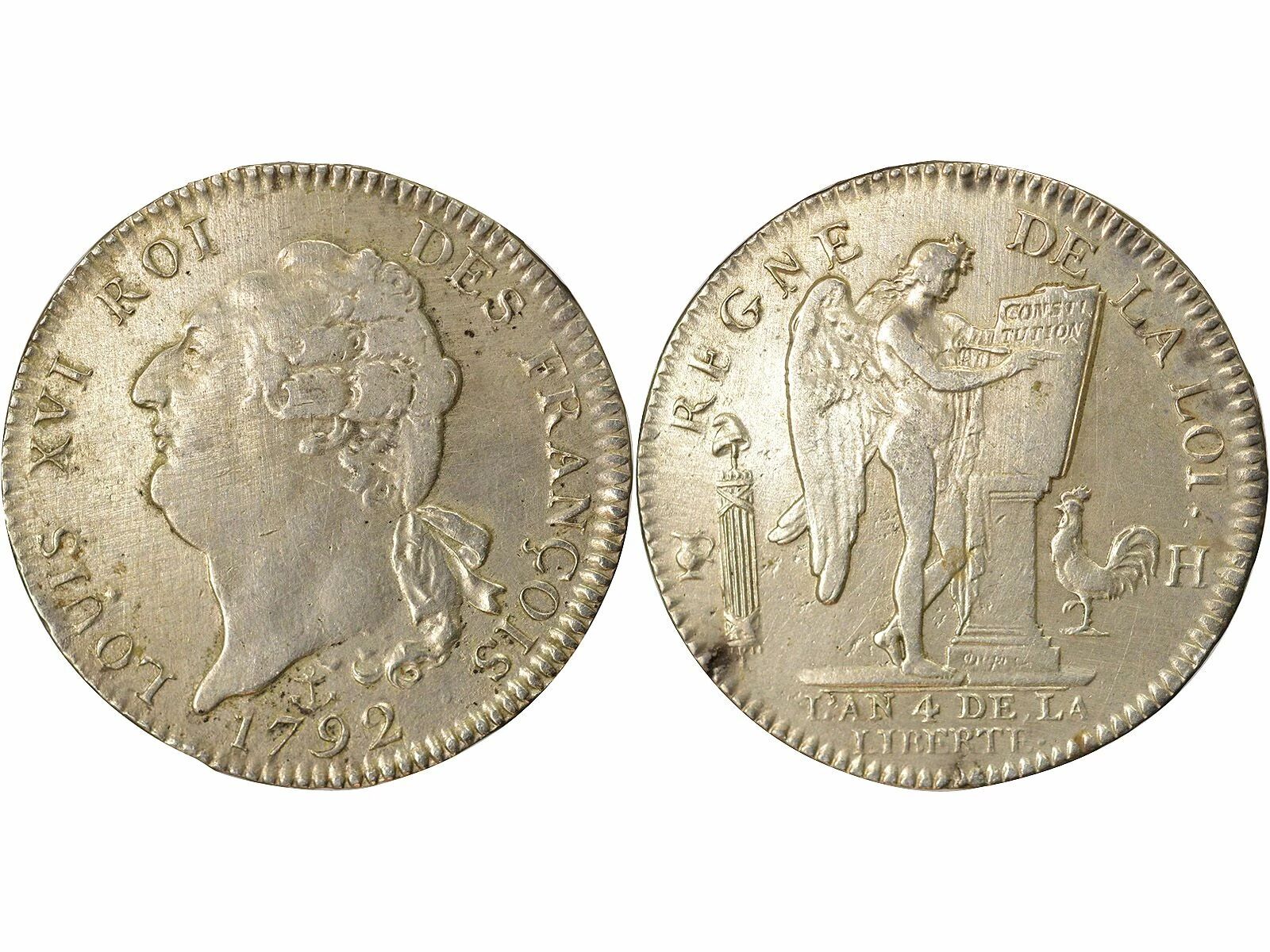 Pièce France Louis XVI - Ecu Argent, au Génie - 1792 H La Rochelle, Trésor des Sauvionnières