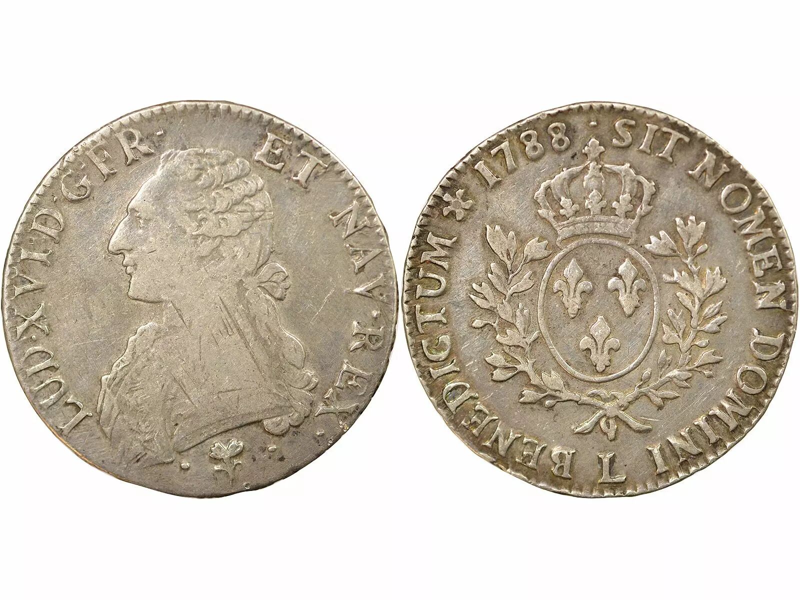 Accueil > Archivage > archivage-Monnaies françaises (470 à 2002) > France Louis XVI - Ecu Argent, aux Rameaux d'Olivier - 1788 L Bayonne
