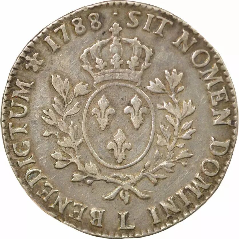 Pièce France Louis XVI - Ecu Argent, aux Rameaux d'Olivier - 1788 L Bayonne