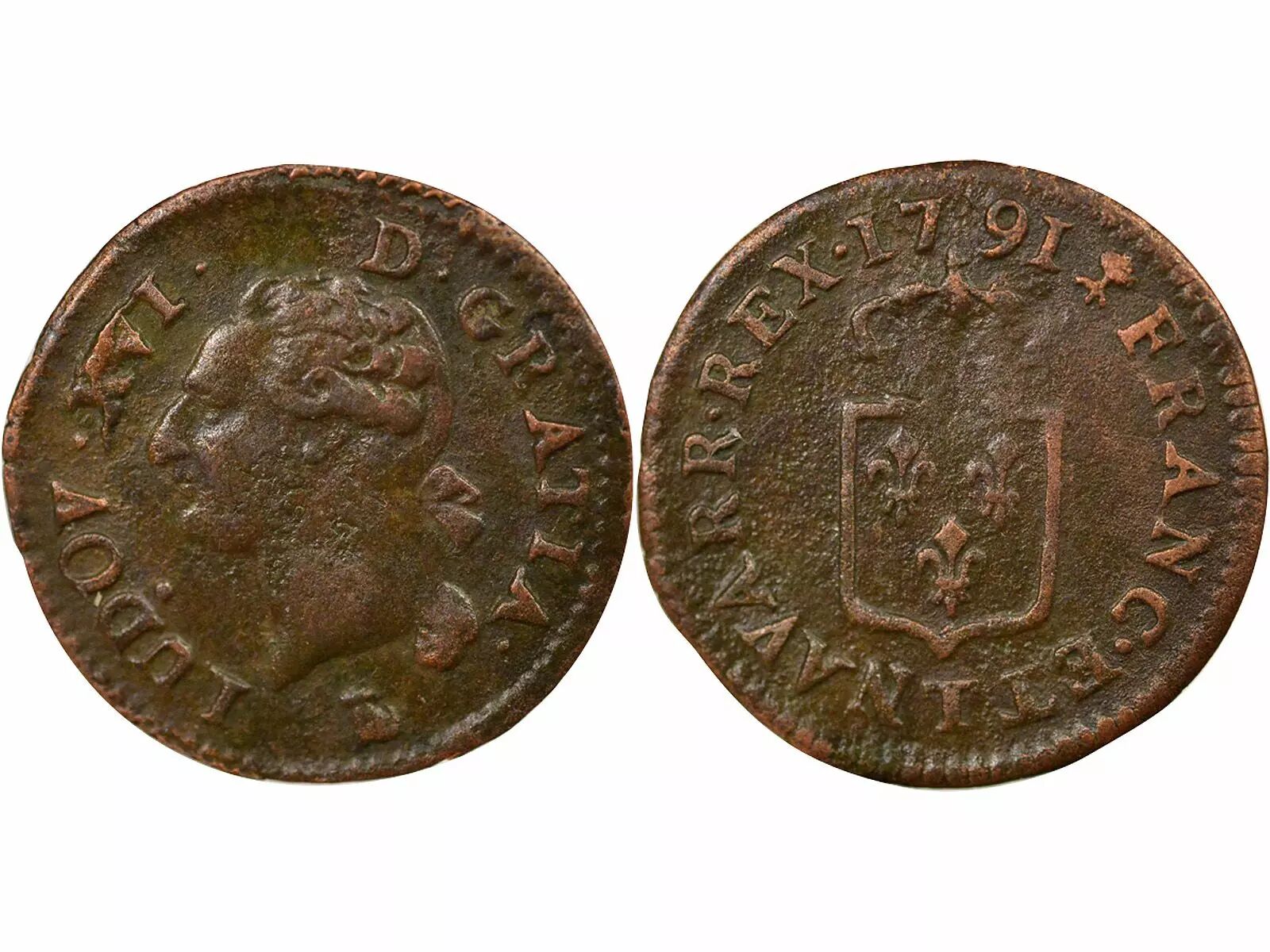 Coin France Louis XVI - Liard with Shield - 1791 T Nantes