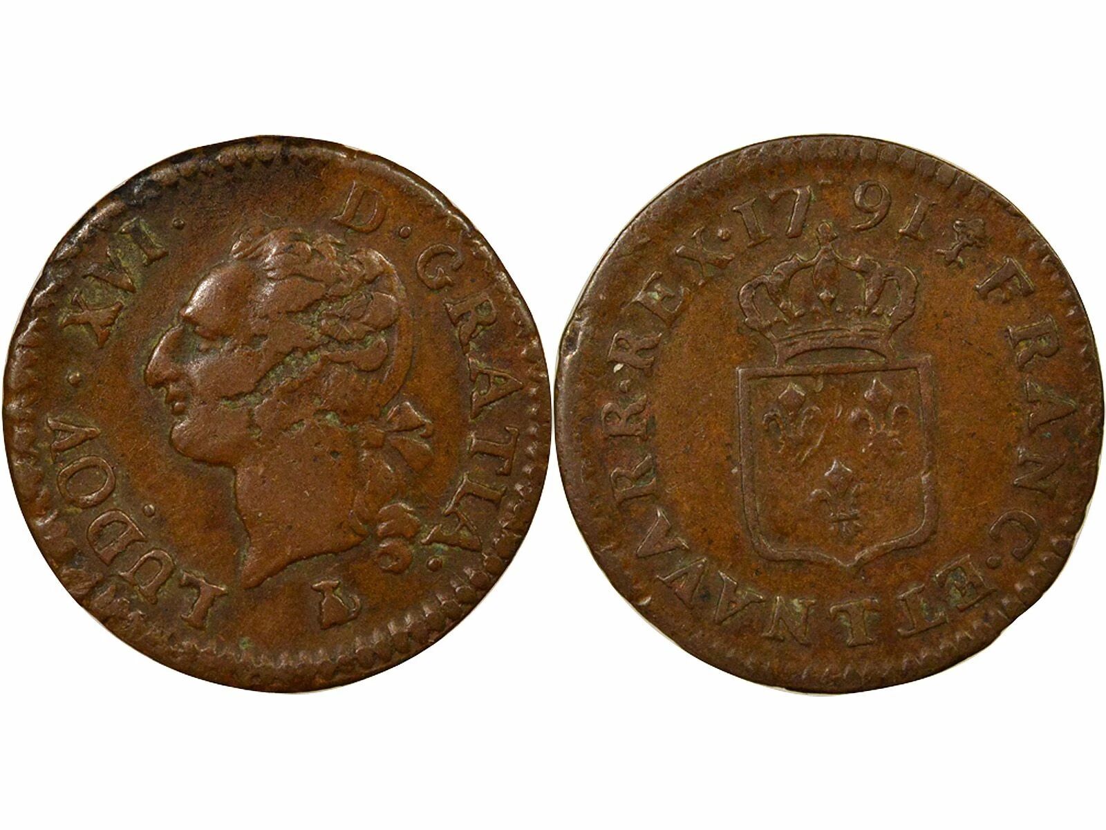 Home > French coins (470 à 2002) > Royal Coinage (987 to 1870) > Louis XVI (1754-1793) > France Louis XVI - Liard with Shield - 1791 T Nantes