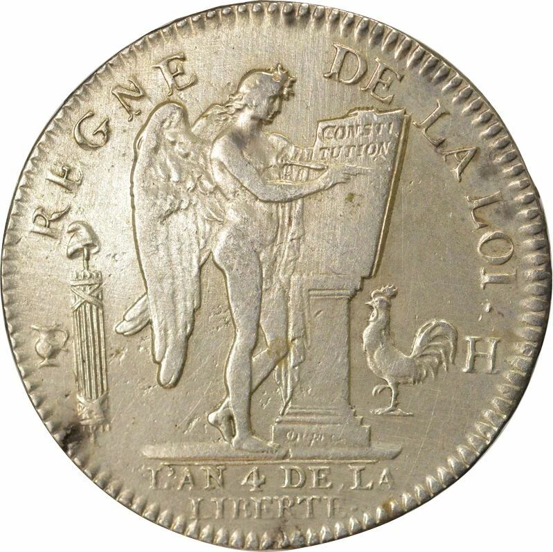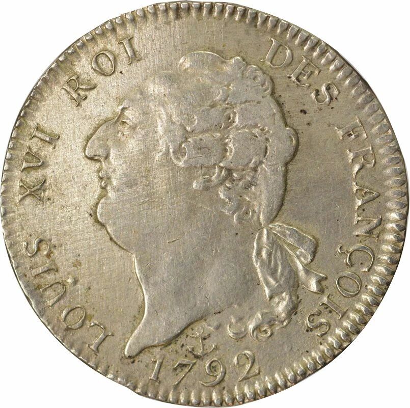 Coin France Louis XVI - Silver Ecu, with Genius - 1792 H La Rochelle, Treasure Trove of the Sauvionnières
