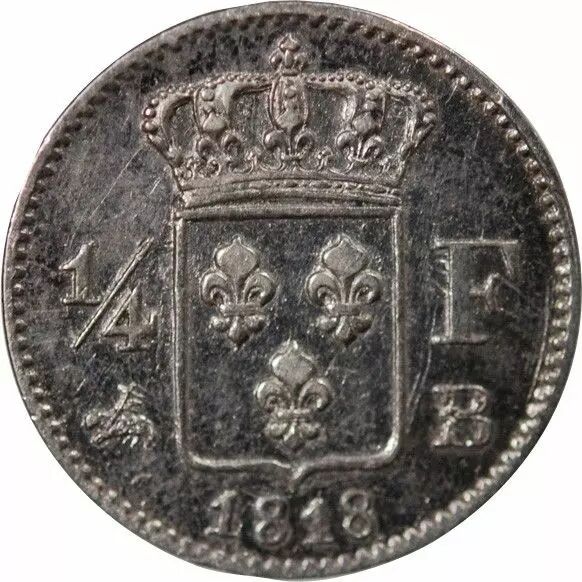 Pièce France Louis XVIII - 1/4 Franc Argent 1818 B Rouen
