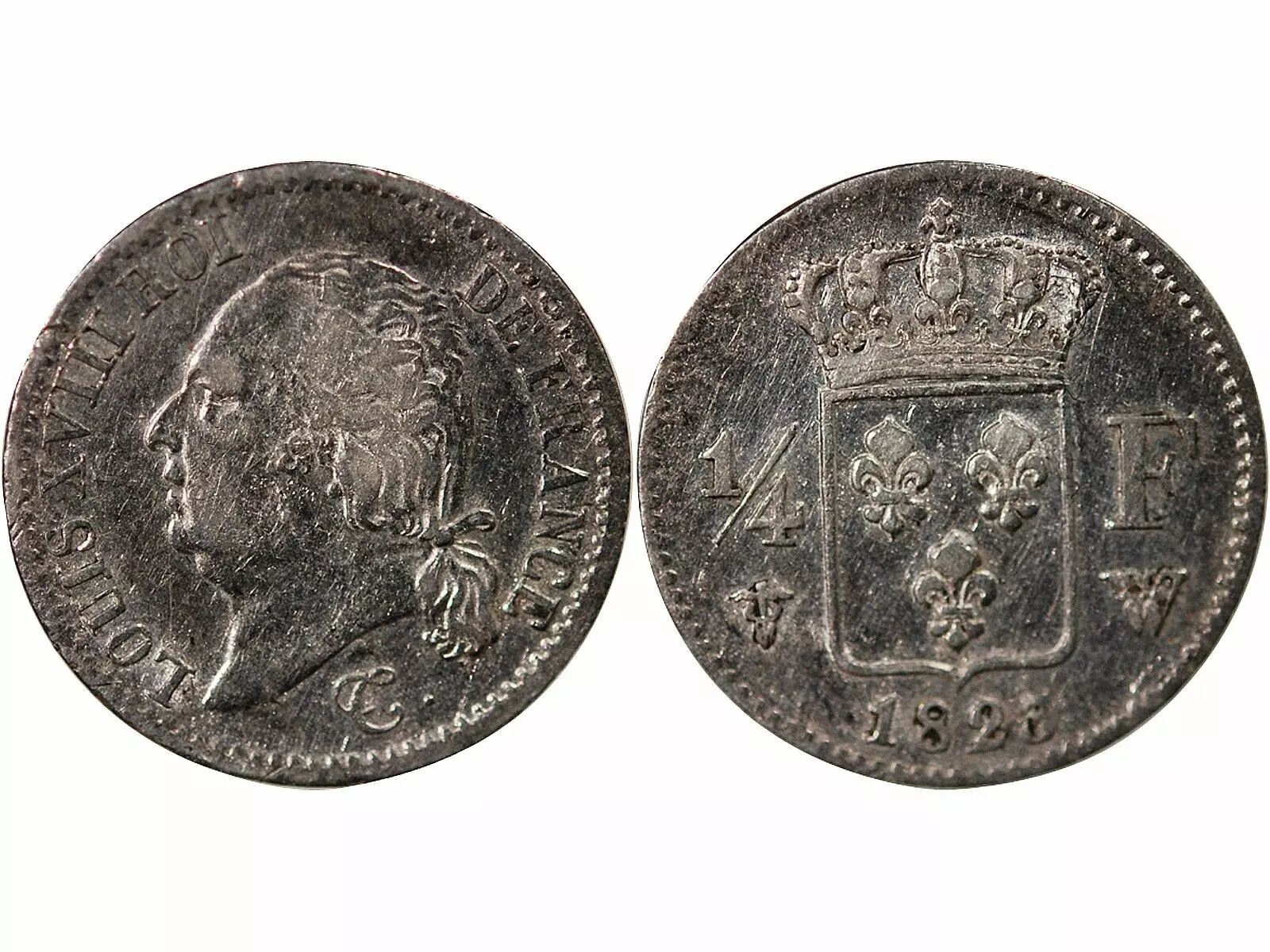 Pièce France Louis XVIII - 1/4 Franc Argent 1823 W Lille