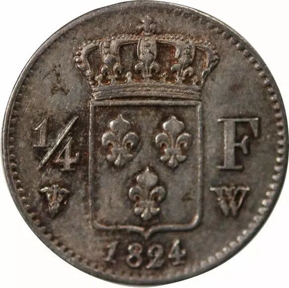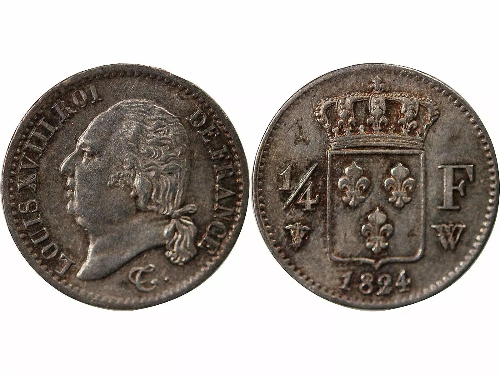 Pièce France Louis XVIII - 1/4 Franc Argent 1824 W Lille