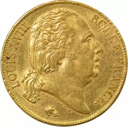 Accueil > Archivage > archivage-Monnaies françaises (470 à 2002) > France Louis XVIII - 20 Francs Or, Tête nue - 1824 A Paris