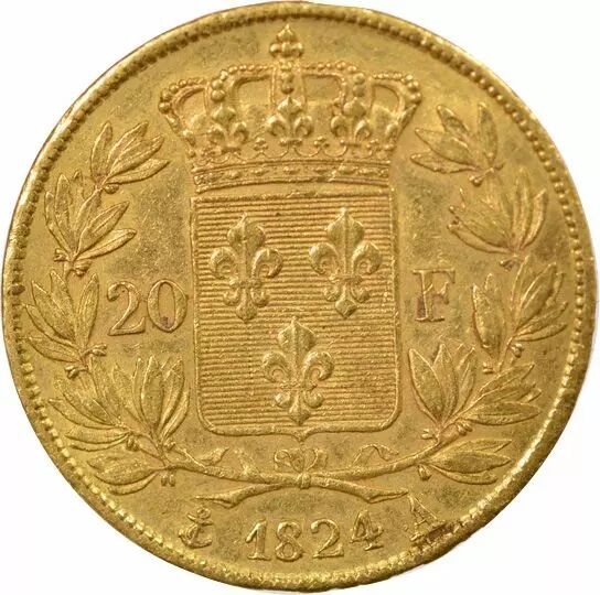 Pièce France Louis XVIII - 20 Francs Or, Tête nue - 1824 A Paris