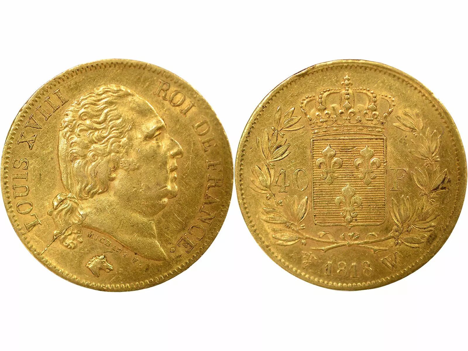Home > > France Louis XVIII - 40 Gold Francs - 1818 W Lille