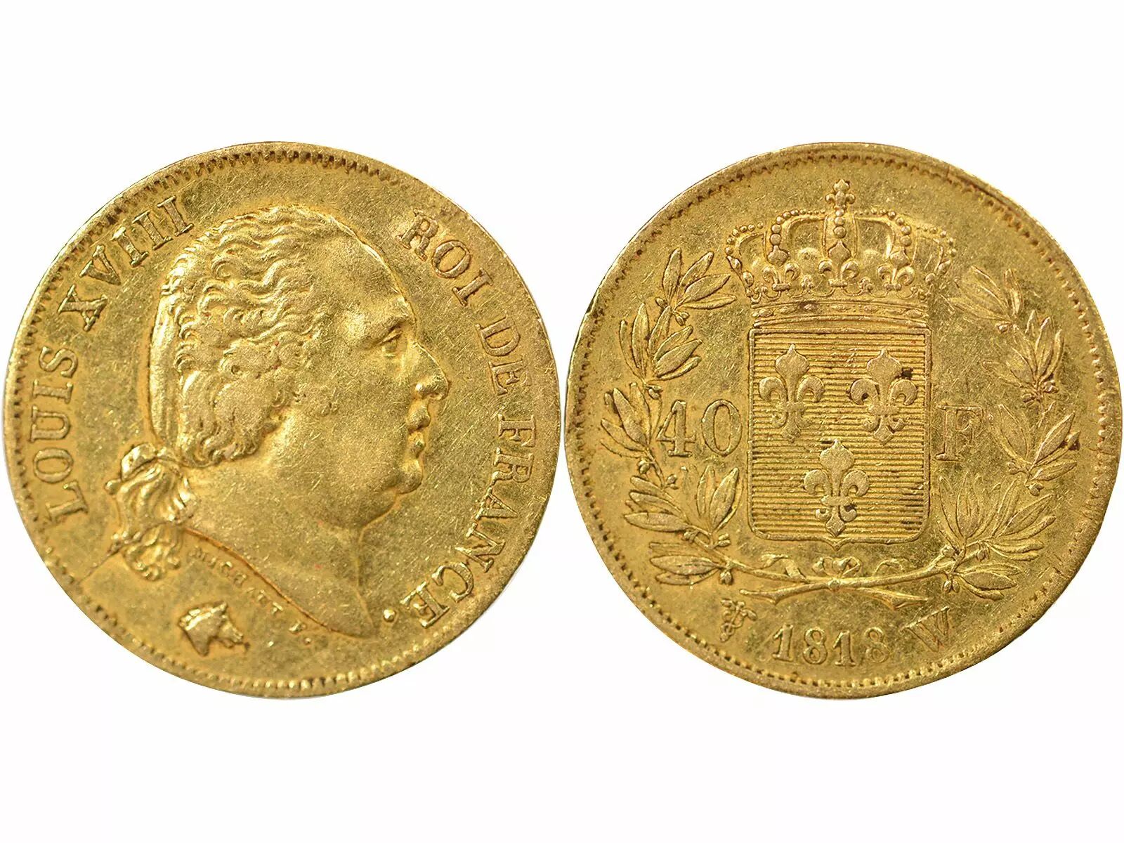 Coin France Louis XVIII - 40 Gold Francs - 1818 W Lille