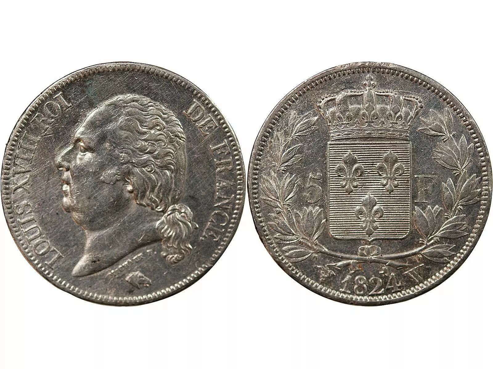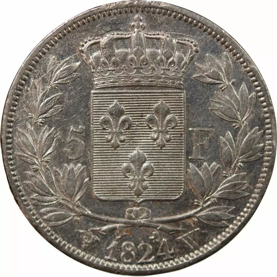 Pièce France Louis XVIII - 5 Francs Argent 1824 W Lille