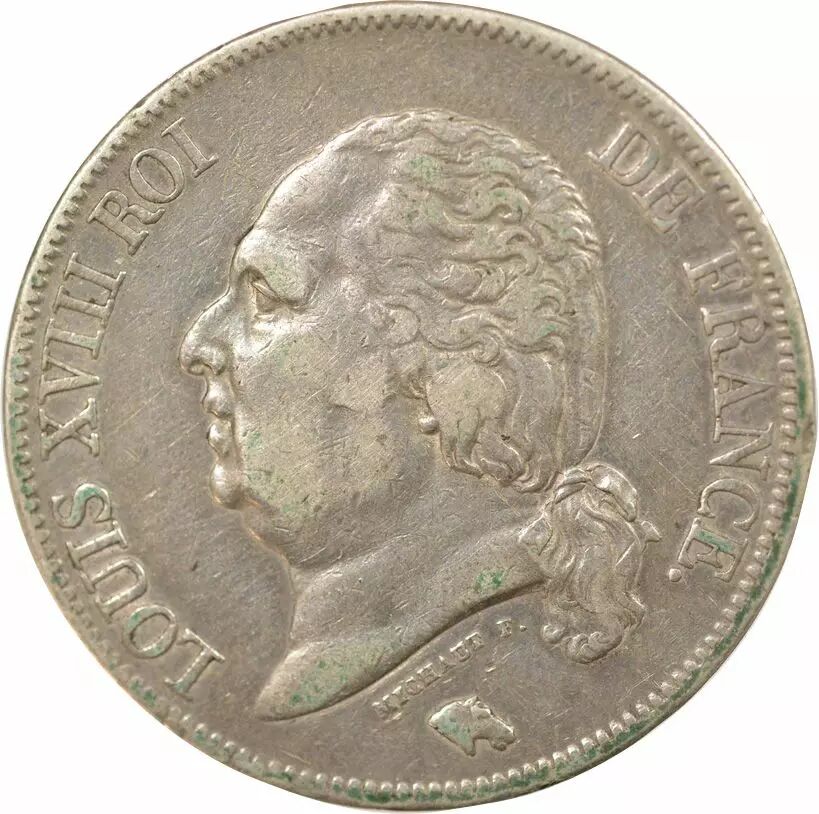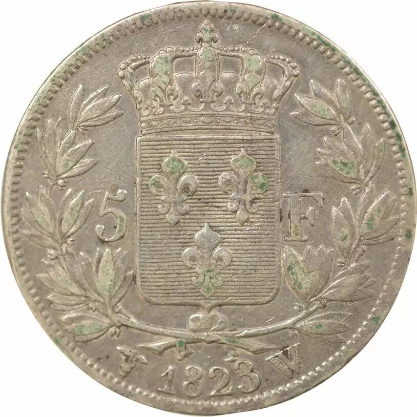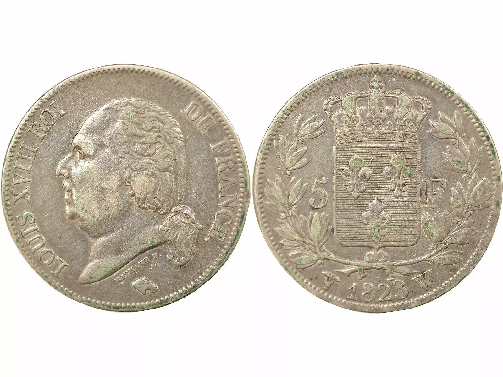 Pièce France Louis XVIII - 5 Francs Argent, Tête nue - 1823 W Lille