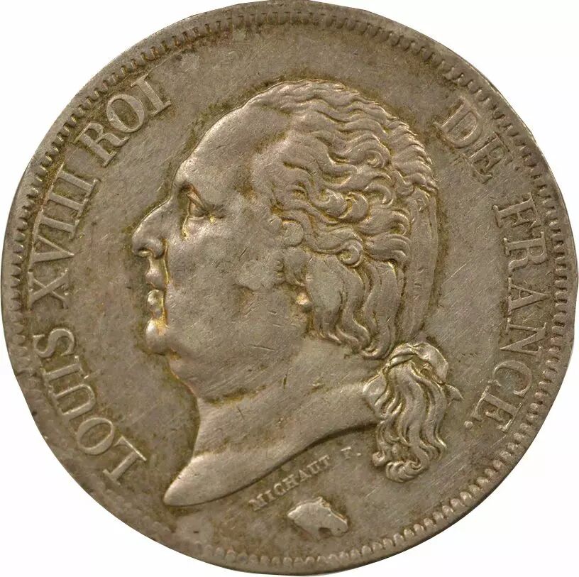 Coin France Louis XVIII - 5 Silver Francs, Bare Head - 1818 B Rouen