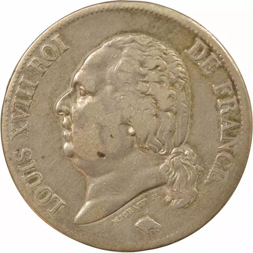 Home > > France Louis XVIII - 5 Silver Francs, Bare Head - 1819 B Rouen