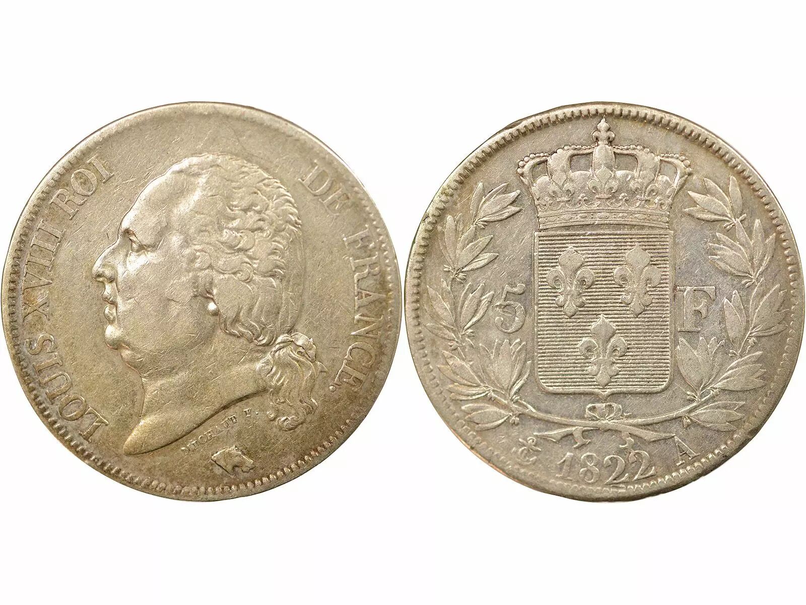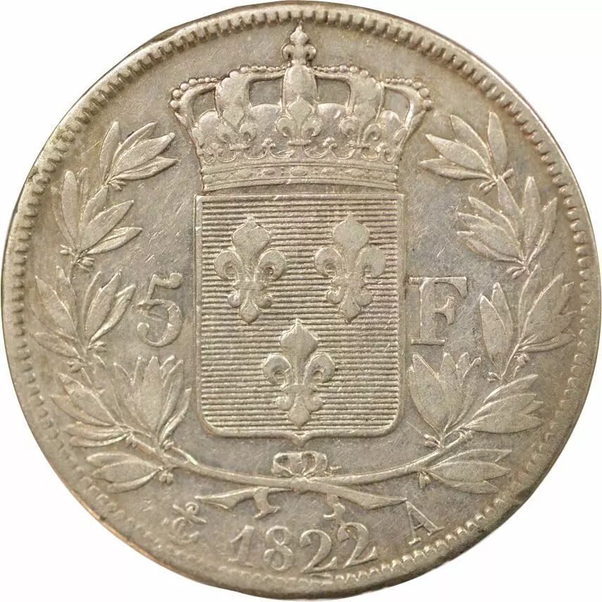 Coin France Louis XVIII - 5 Silver Francs, Bare Head - 1822 A Paris