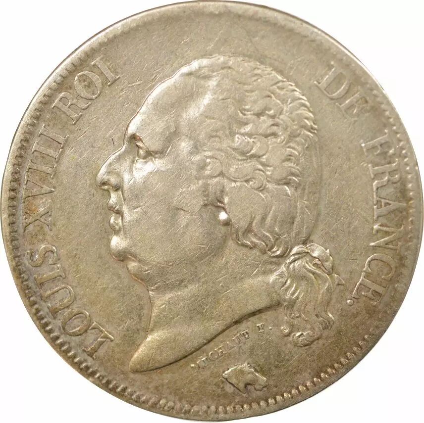 Home > > France Louis XVIII - 5 Silver Francs, Bare Head - 1822 A Paris