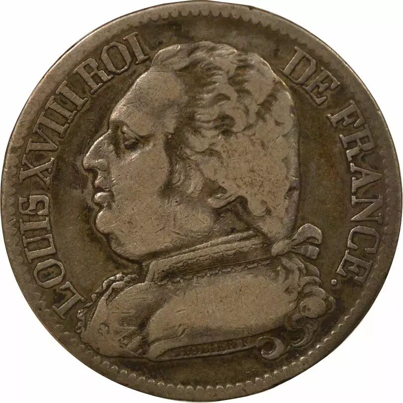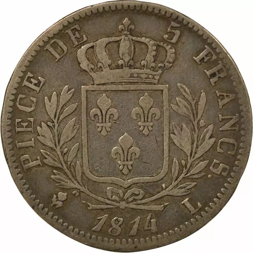 Home > French coins (470 à 2002) > Modern Currencies (1789 to 2002) > 5 Francs > France Louis XVIII - 5 Silver Francs, Dressed up Bust - 1814 L Bayonne