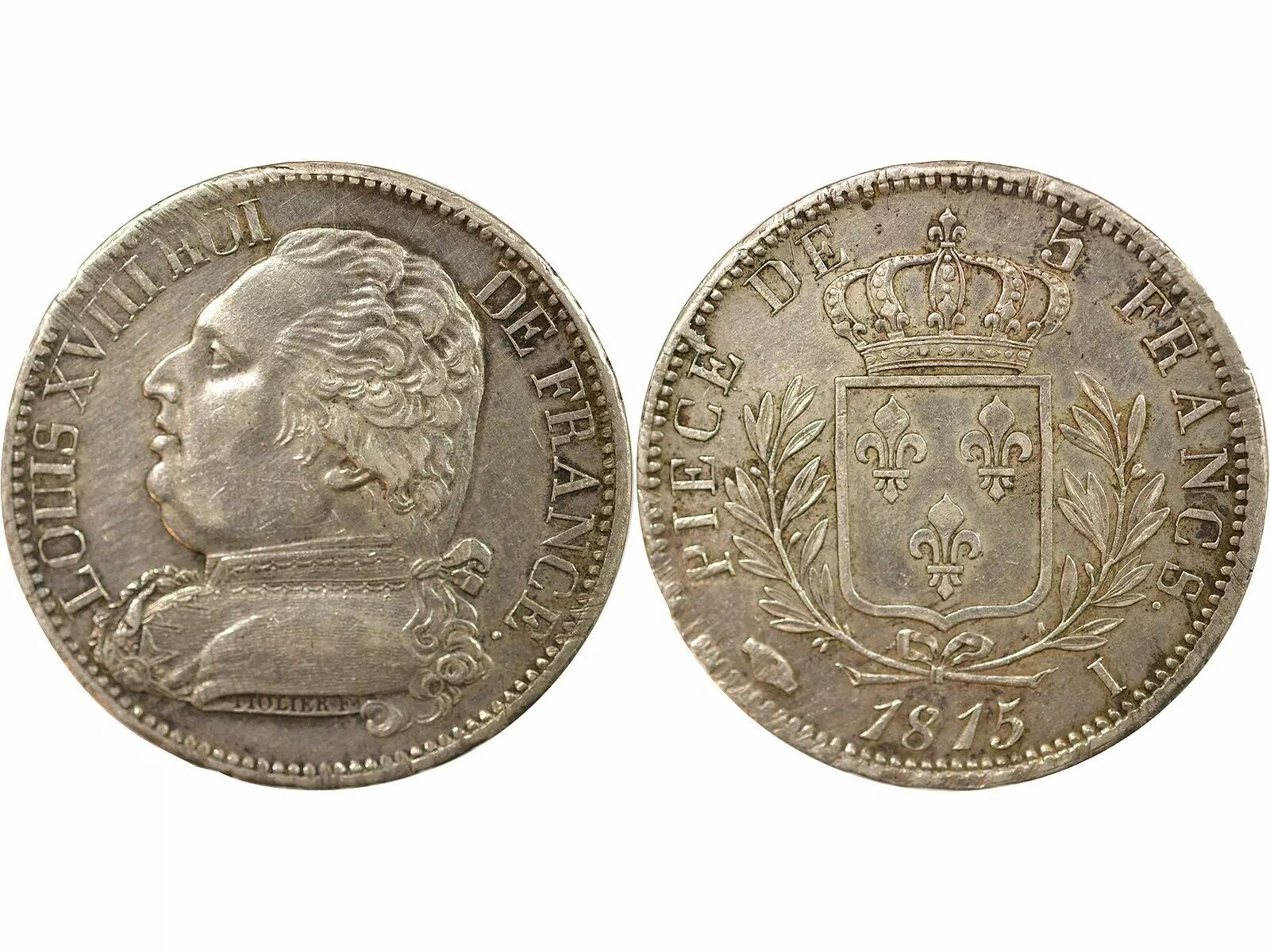 Coin France Louis XVIII - 5 Silver Francs, with Dressed up Bust - 1815 I Limoges