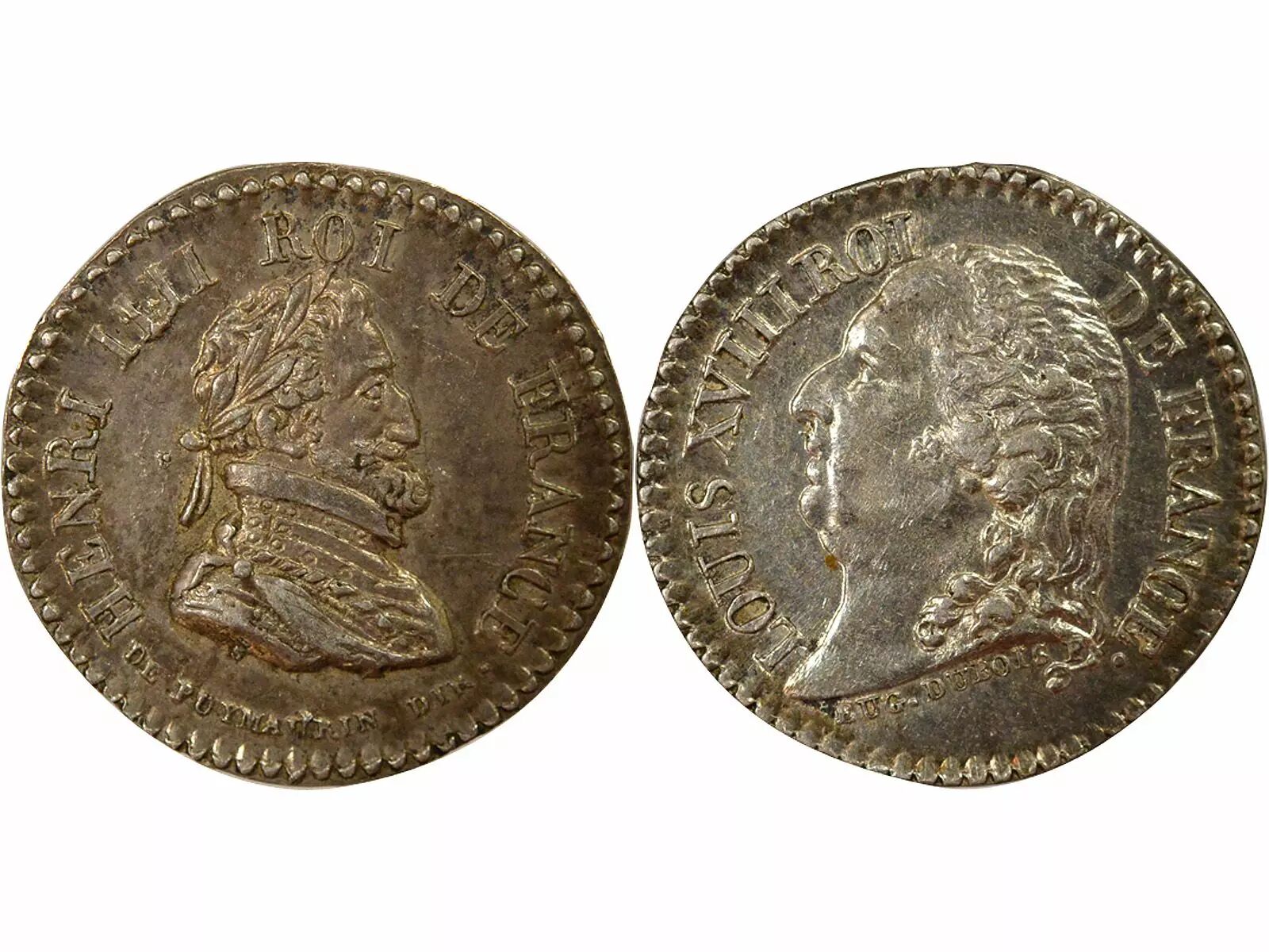 Home > French coins (470 à 2002) > Medals (since 1500) > France Louis XVIII - Quinaire Argent, Henri IV - Undated 1818