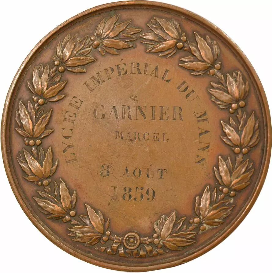 Revers : LYCEE IMPERIAL DU MANS / GARNIER / MARCEL / 8 AOÛT / 1859
