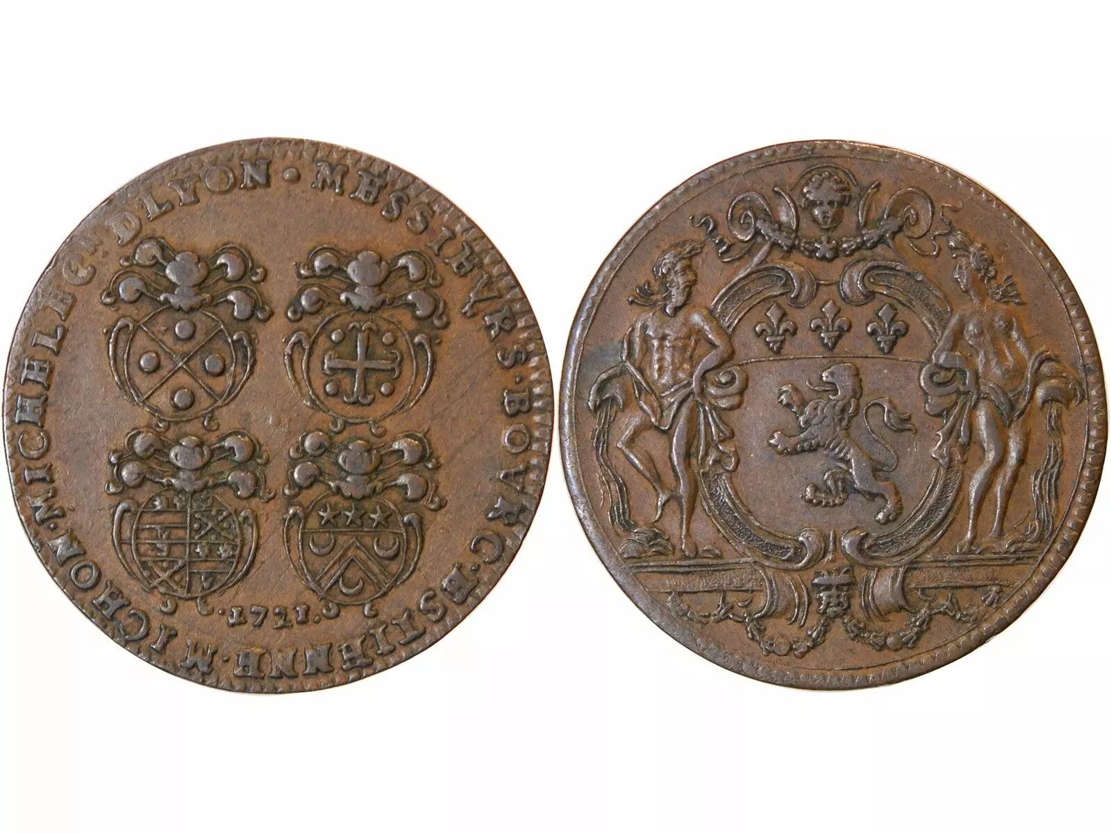 France Lyon, Consulat De Lyon, Les 4 Echevins - Jeton Bronze 1721