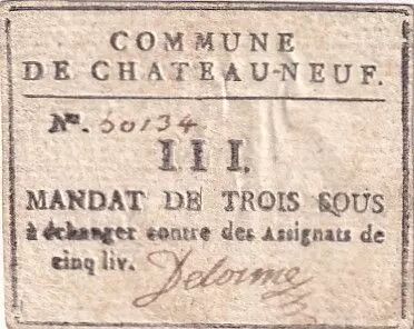 Home > French Banknotes > Departmental Emergency Currency > Eure-et-Loir Chartres > France Mandat de 3 Sous - Eure et Loir - Commune de Chateauneuf - 1792