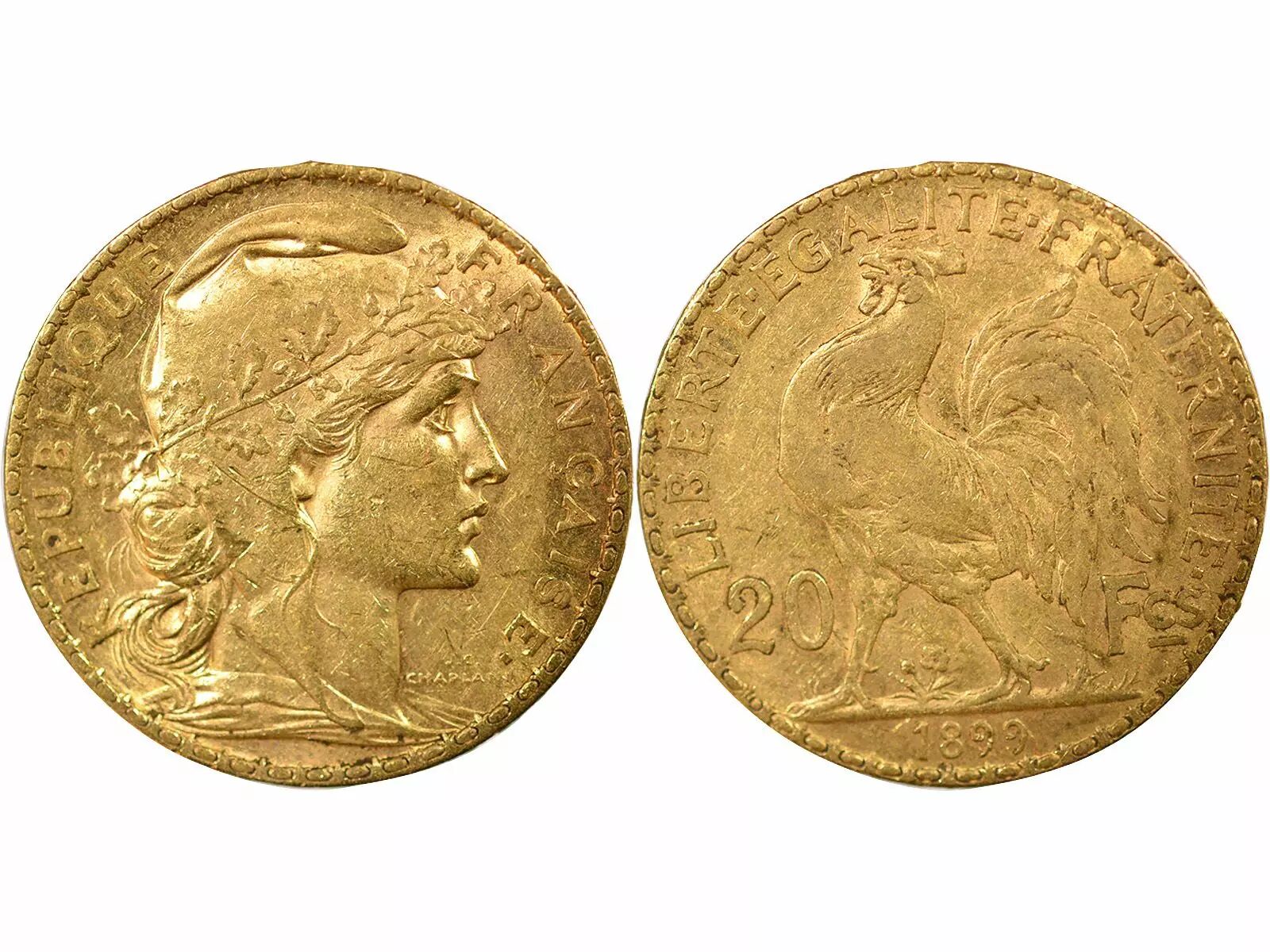 Home > > France Marianne - 20 Gold Francs, Rooster - 1899 Paris