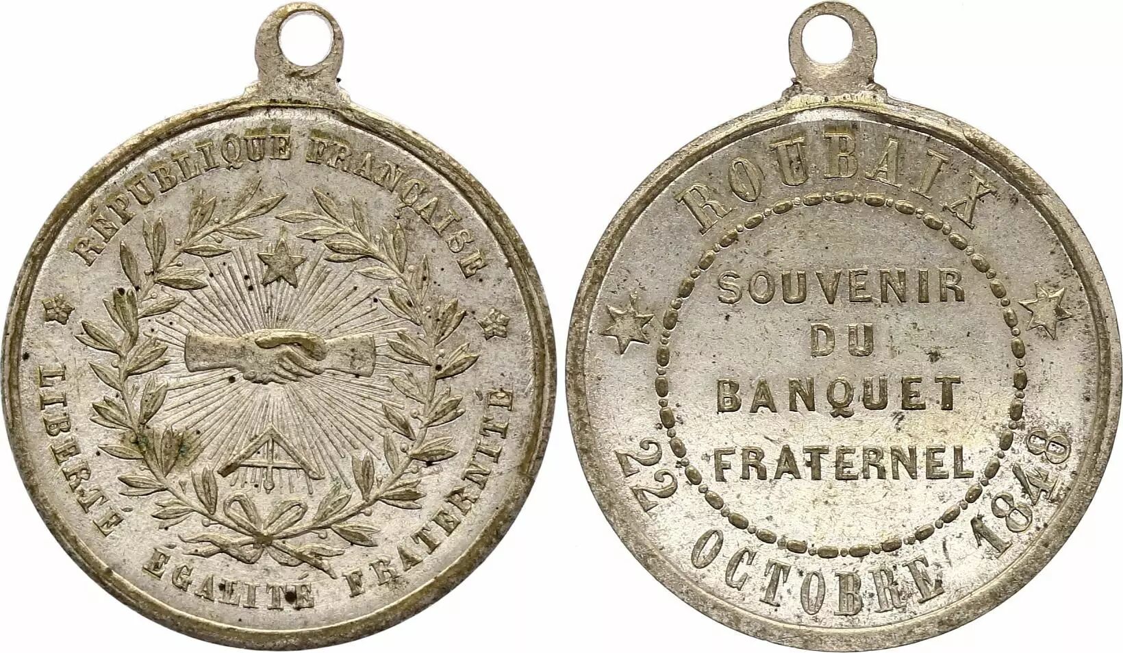 Pièce France Médaille Roubaix - Souvernir du Banquet Fraternel - 1848
