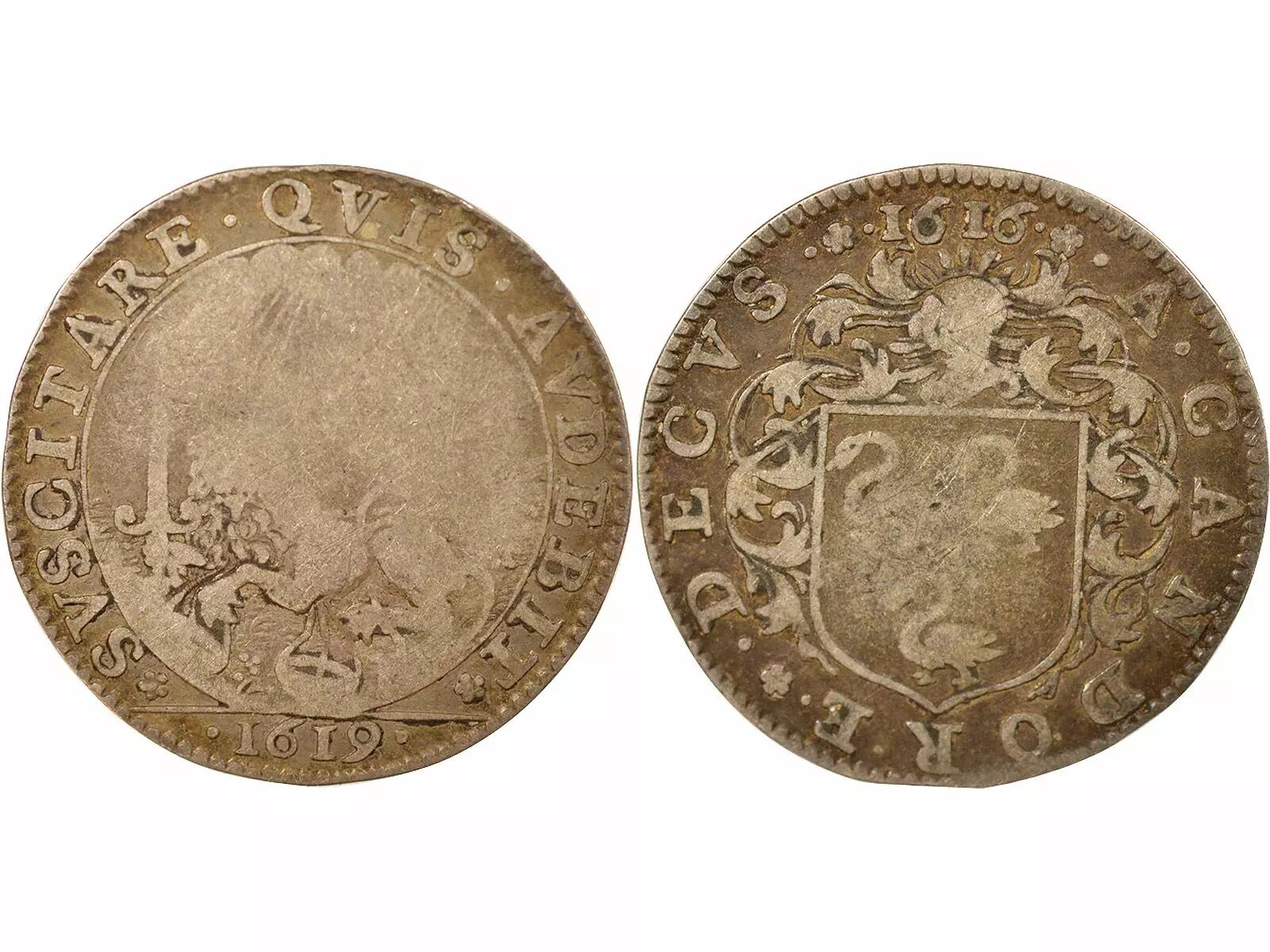 Reverse : * SVSCITARE . QVIS . AVDEBIT * / . 1619 .