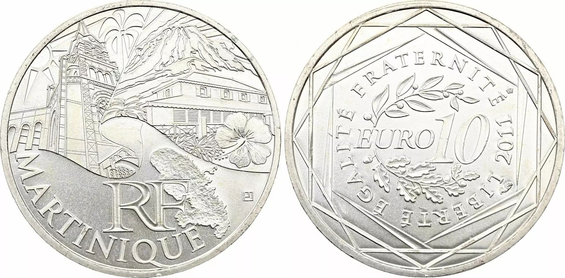 Sur la face un dessin correspondant à chaque région apparaît sur un fond stylisé. En pourtour dans le bas de la pièce figure le nom de chaque région. Une reprise graphique du drapeau régional couronne l’ensemble sur la partie haute de la pièce. Le revers commun dévoile au milieu la valeur faciale de 10 € entourée de 2 branches l’une de chêne l’autre de laurier évoquant le sigle de l’Euro. L’inscription « Liberté Egalité Fraternité » se place sur le pourtour de la pièce et l’ensemble du motif se voit encadré par un assemblage de traits représentant l’hexagone.